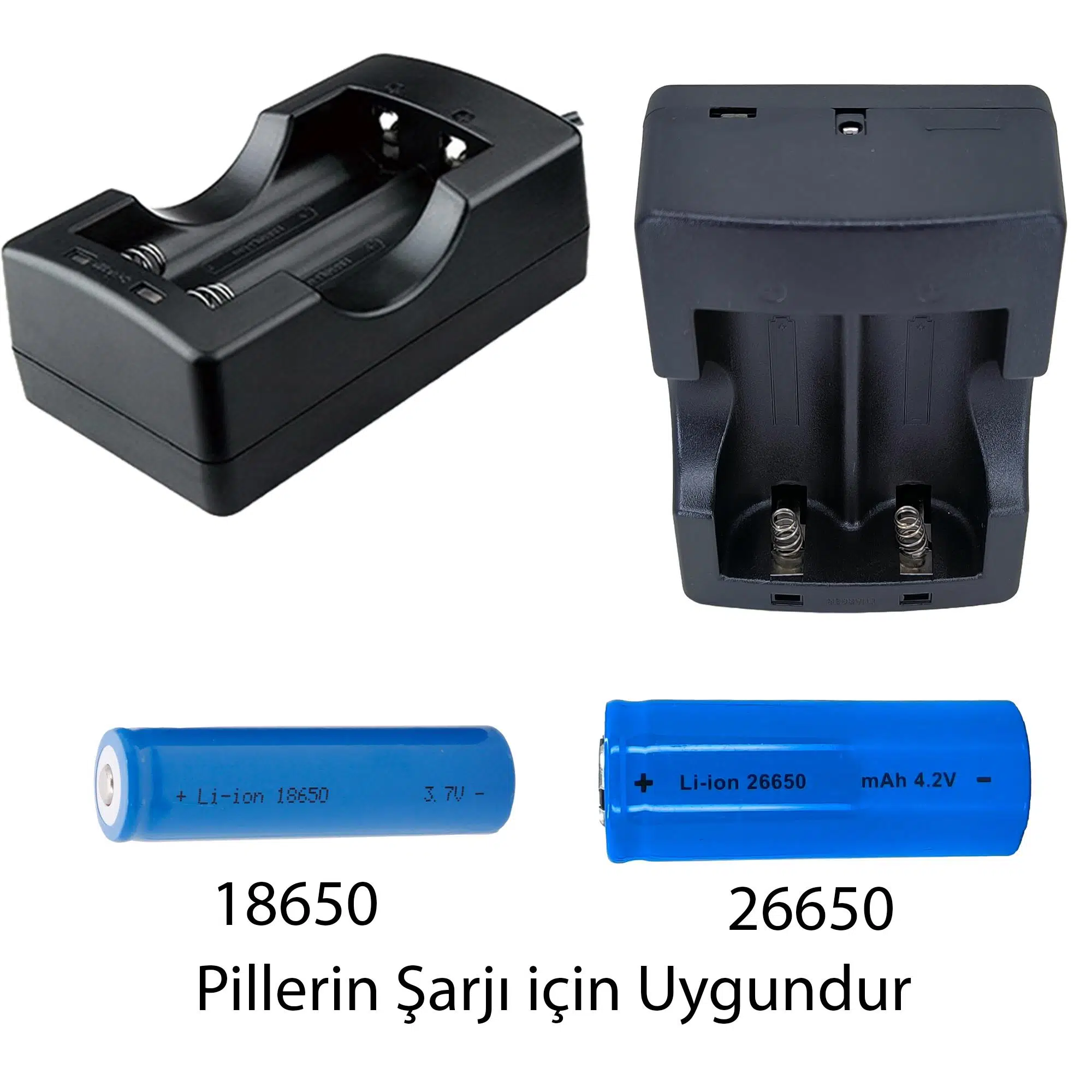 Şarj Aleti 18650 pilleri ve 26650 pilleri Şarj edebilir.