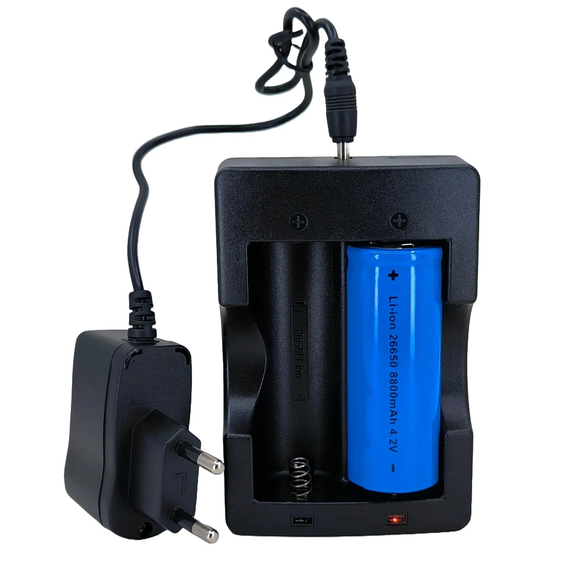 Şarj Kitinde 2 Li Şarj Cihazı ve 1 Adet 26650 Pil vardır.