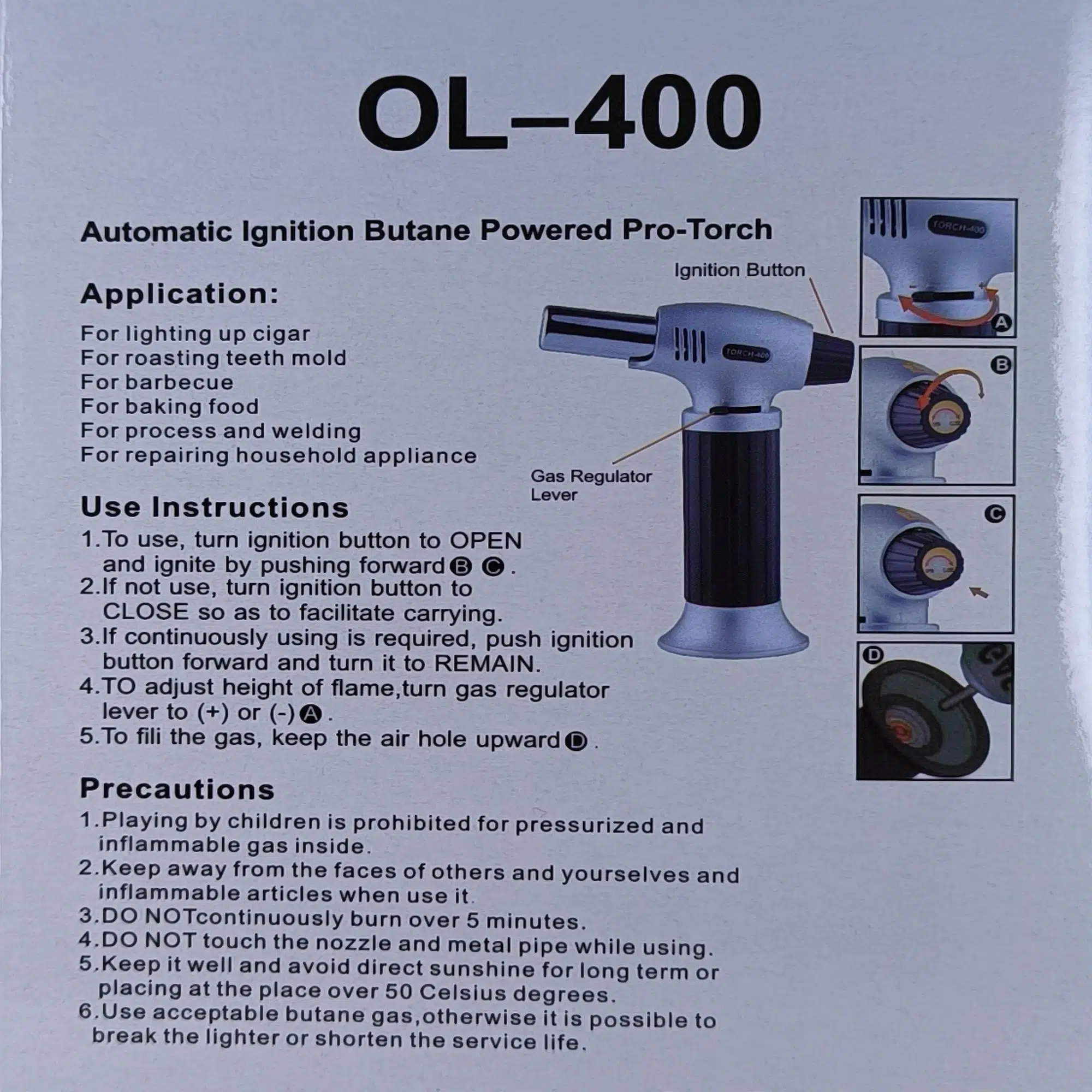 ·Bütan gazı kullanınız, aksi takdirde çakmağınız kırılabilir kullanım ömrü kısalabilir.