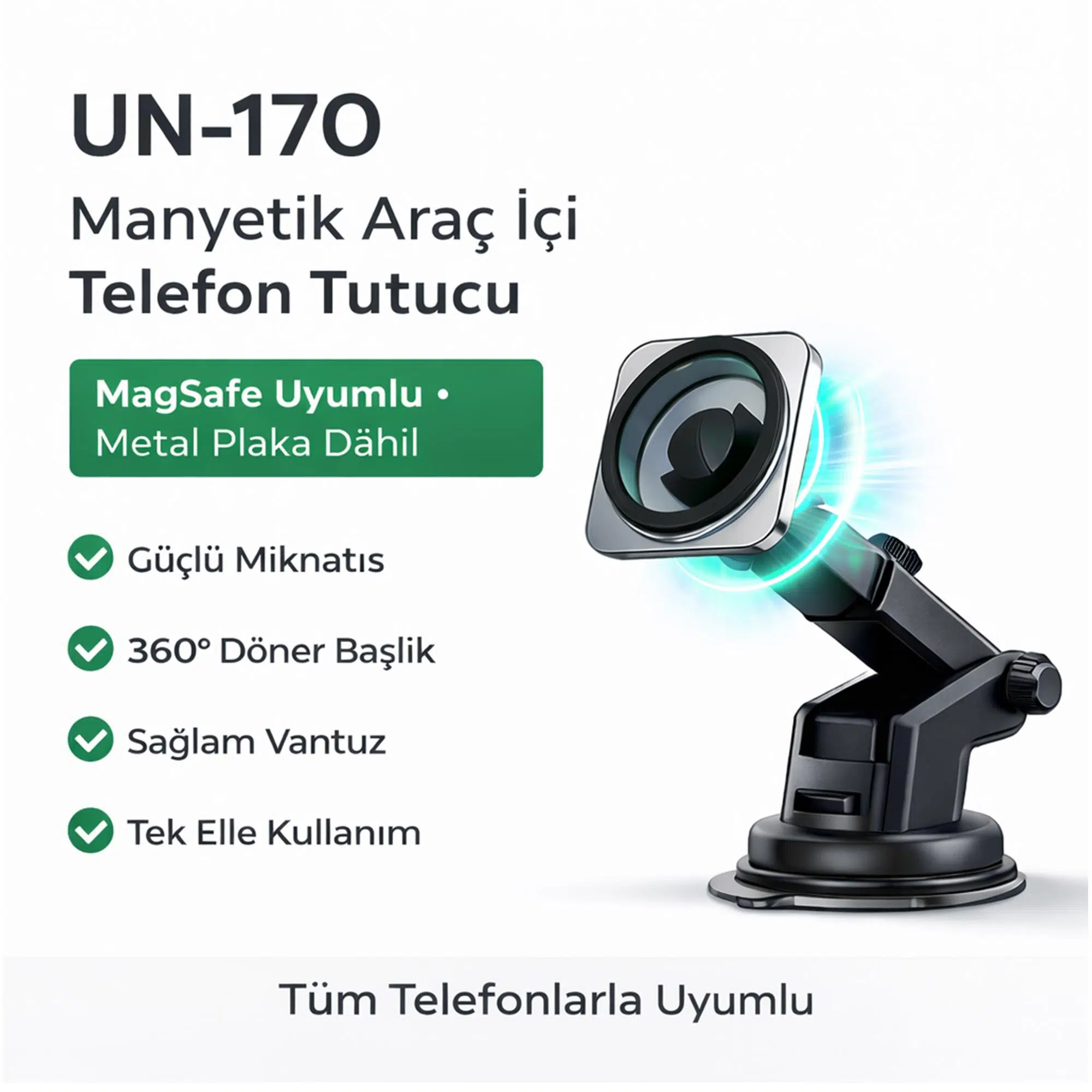 Hedyex UN-170 MagSafe Uyumlu Vantuzlu Manyetik Araç İçi Telefon Tutucu