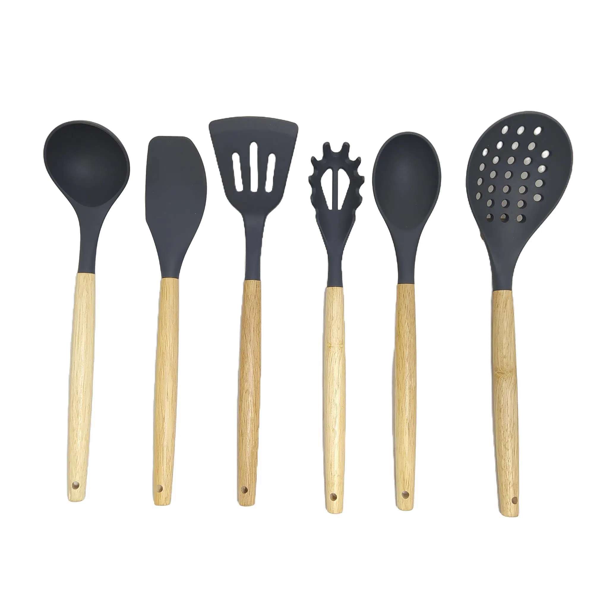Ivory Doğal Bambu Saplı %100 Silikon Mutfak Seti 6 Parça Gri
