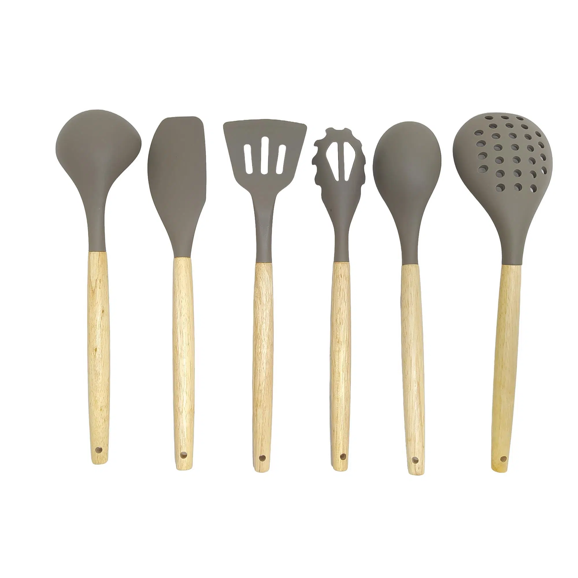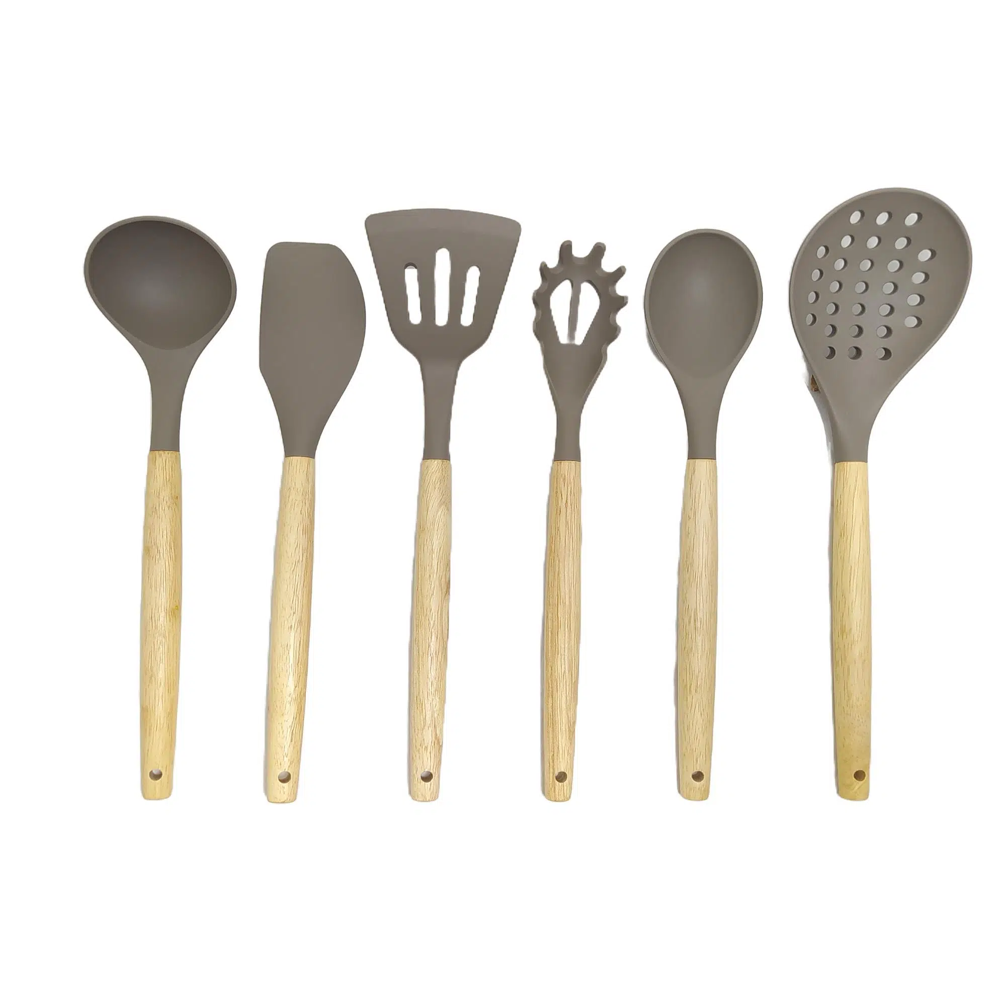 Ivory Doğal Bambu Saplı %100 Silikon Mutfak Seti 6 Parça Kahve