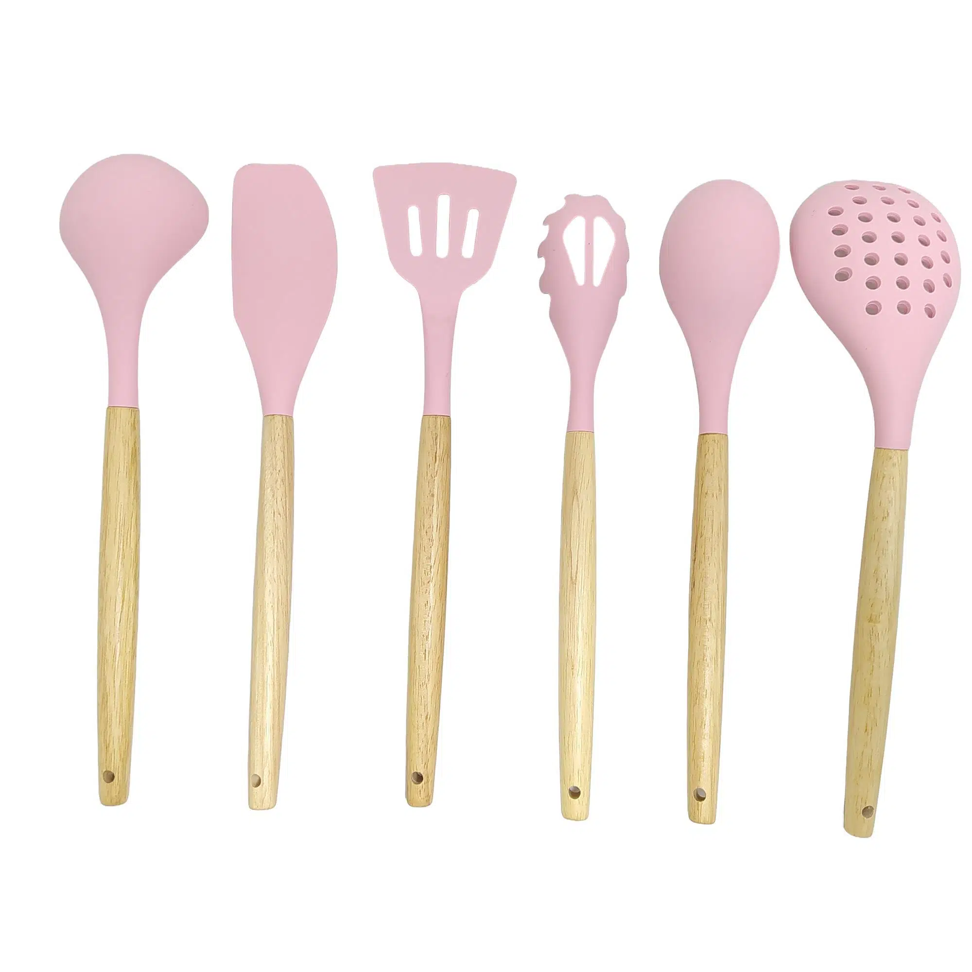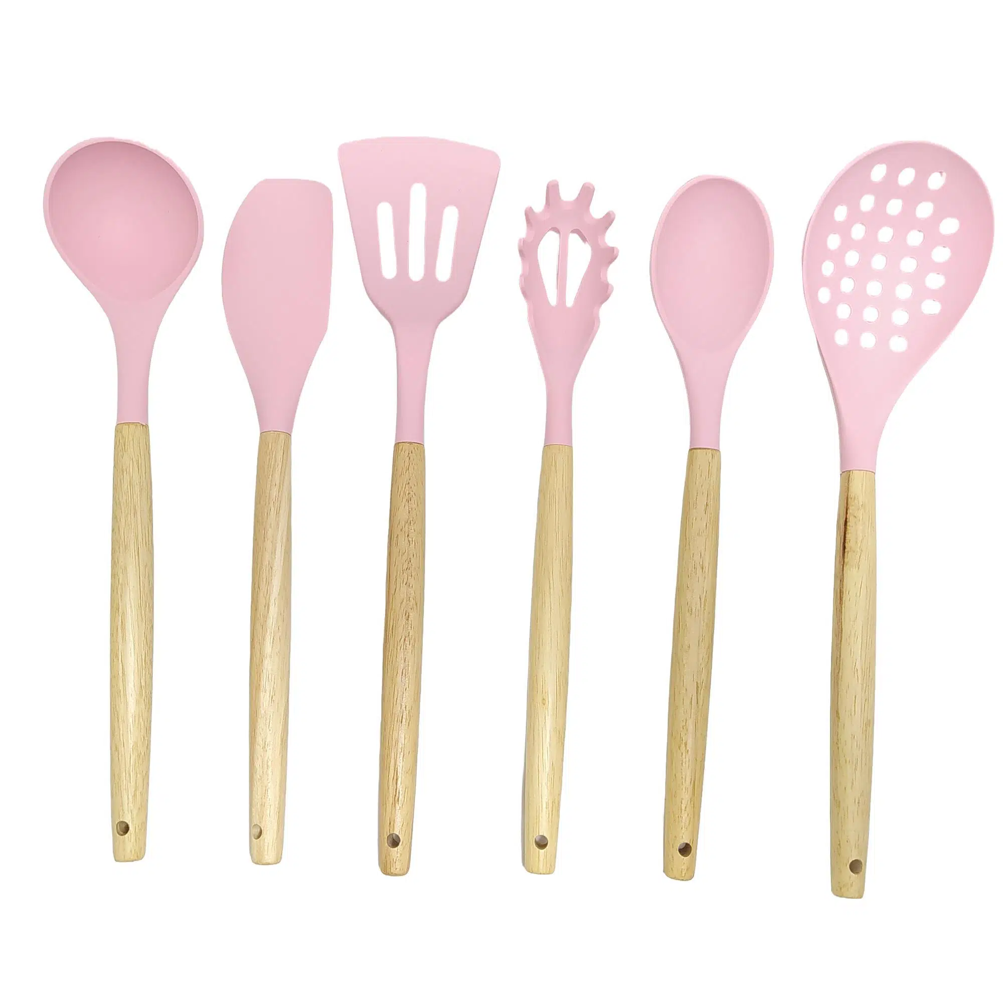 Ivory Doğal Bambu Saplı %100 Silikon Mutfak Seti 6 Parça Pembe