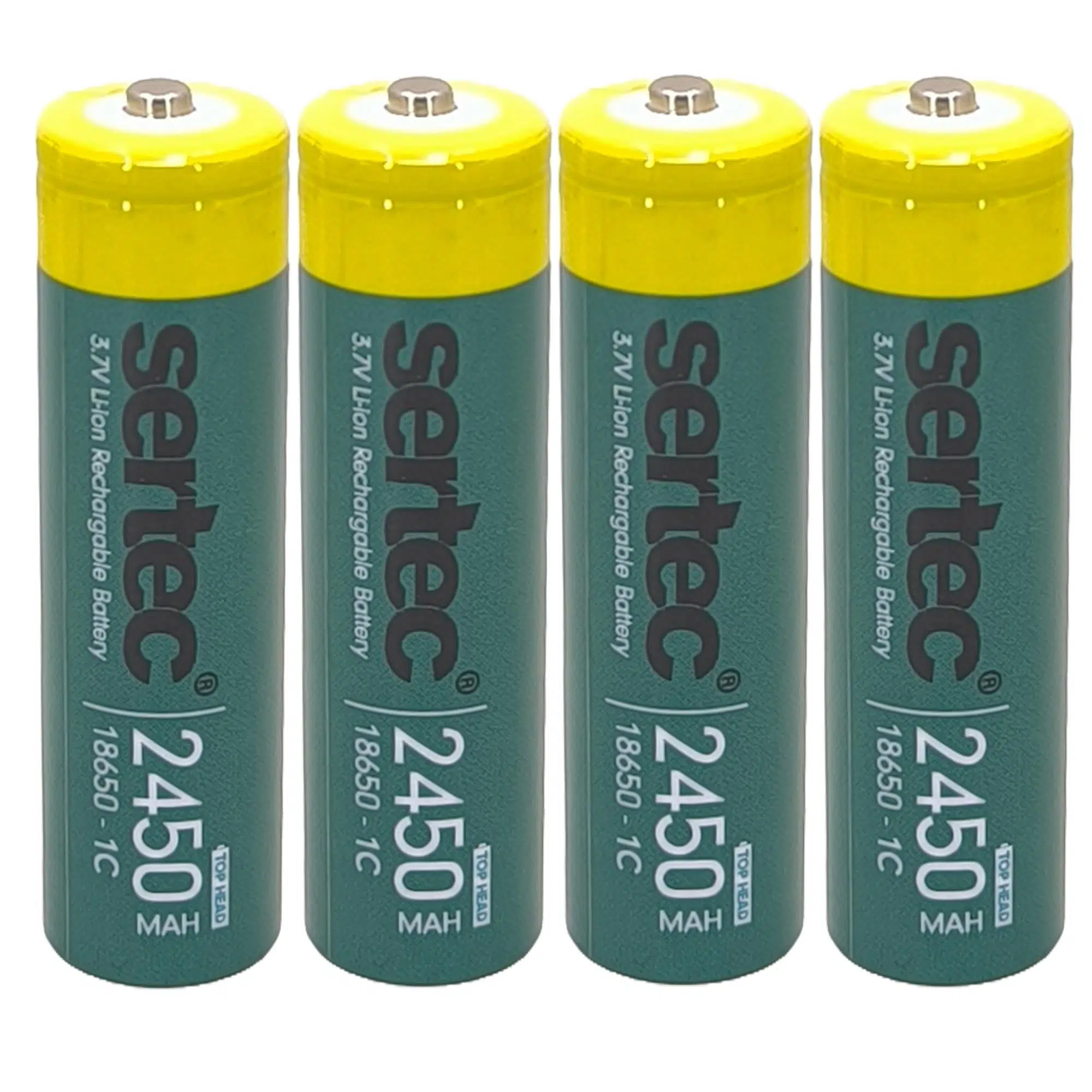 EtiketlerSertec 18650 1C Şarjlı Pil 2450mAh Çıkıntılı Başlıklı Fener Pili 3.7V Li-ion 4lü