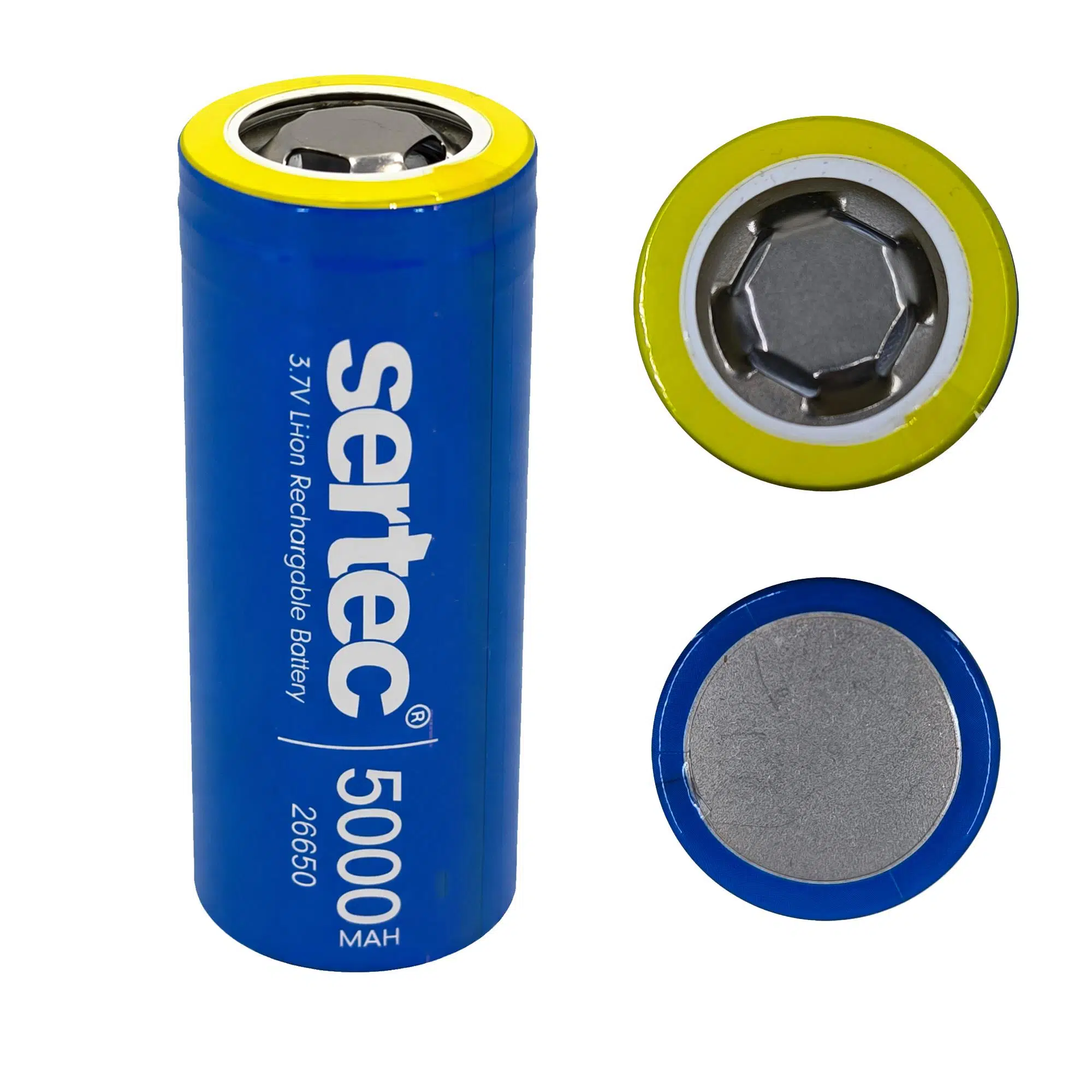Sertec 26650 5000mAh 3.7V Li-ion Şarj Edilebilir Pil (Düz Başlıklı)